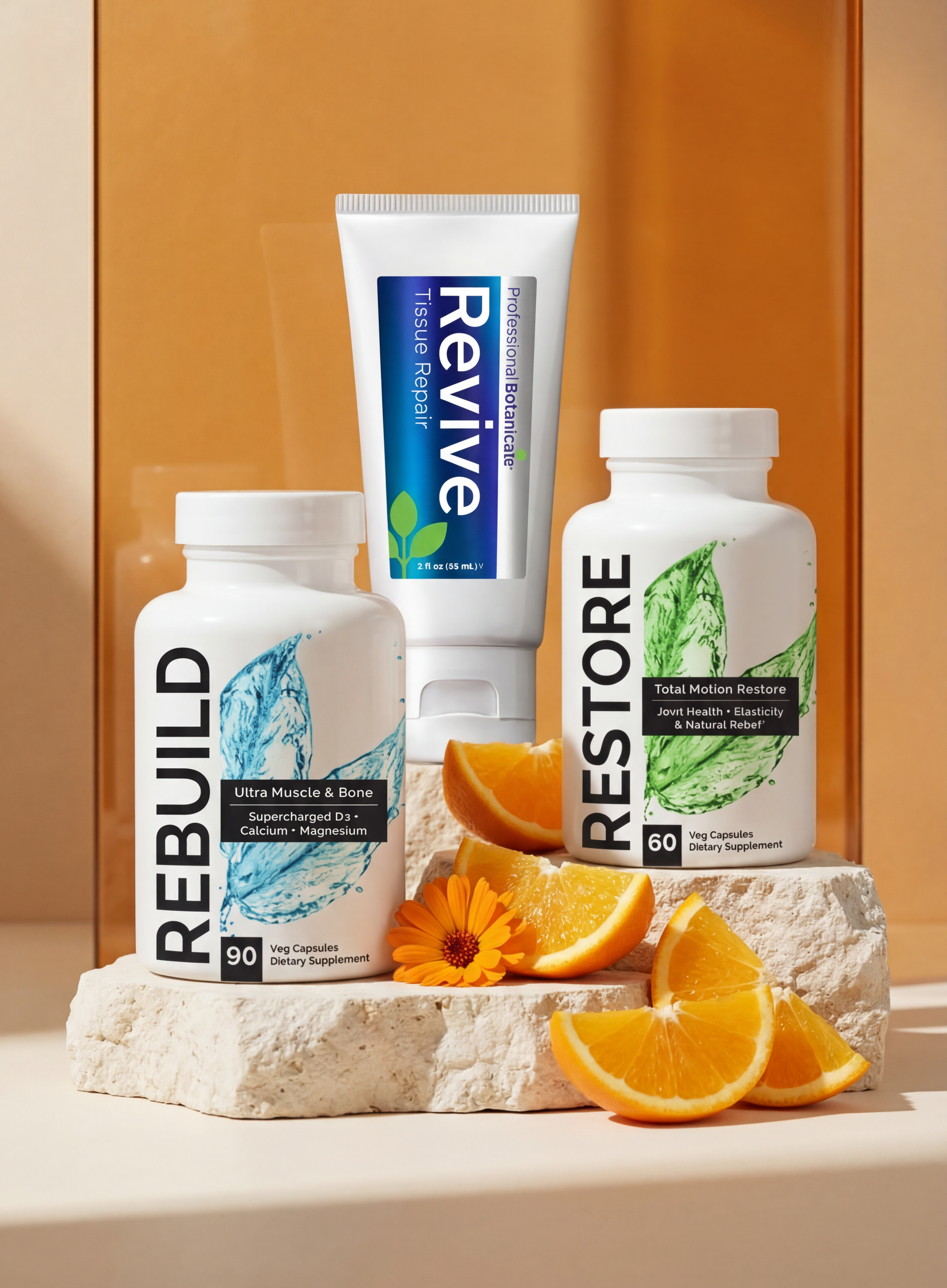 RESTORE and REBUILD pair perfectly as synergistic botanical support to rapidly and holistically deliver rapid results - getting you back to peak health. Additionally, REVIVE is a game-changing potent relief cream that can be used on demand for fast results.